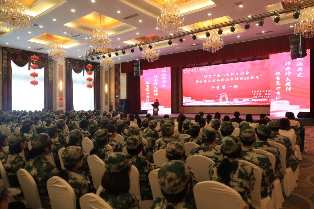 为纪念中国人民抗日战争暨世界反法西斯战争胜利80周年,共同缅怀革命先烈,感悟伟大抗战精神,长春职业技术大学于9月3日下午在乡村振兴人才学院会议中心举办了主题为“铭记抗战历史 传承伟大精神 担当复兴重任”的《开学第一课》。